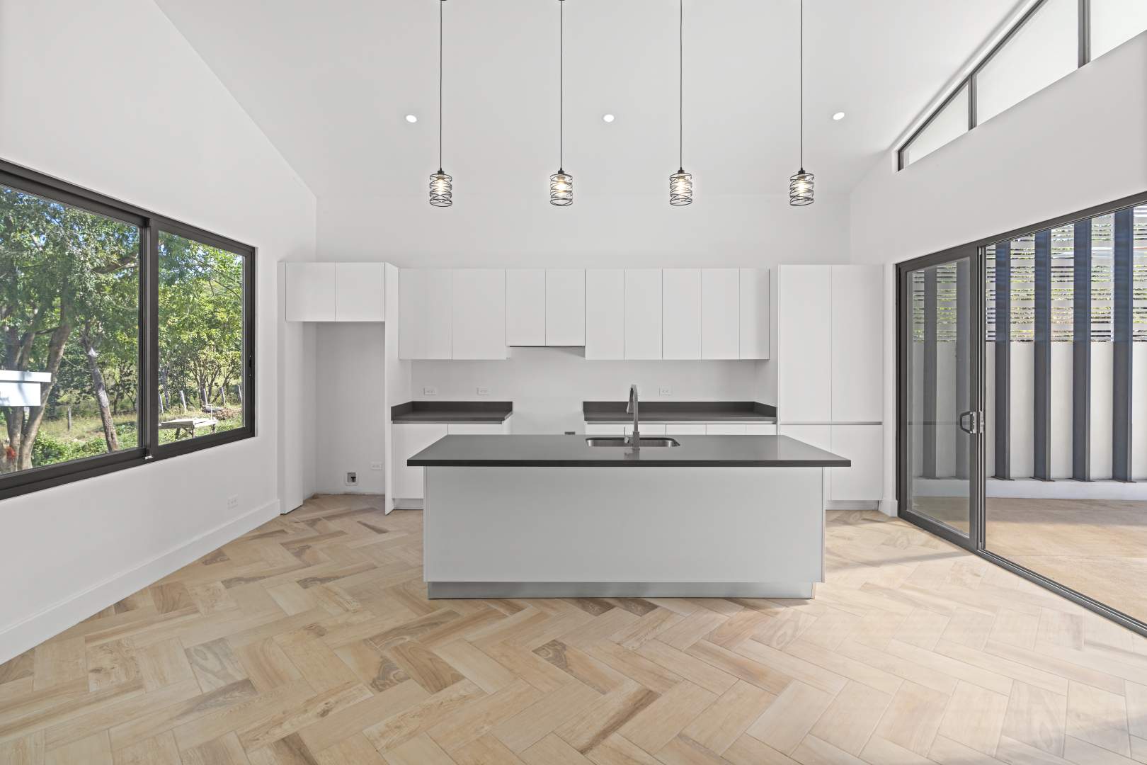 As you step inside, you’ll be greeted by an open-concept living space that seamlessly blends the kitchen, dining area, and living room. The interior design embraces a coastal chic theme with soft, neutral hues, complemented by natural textures and materials, creating a soothing and inviting ambiance.