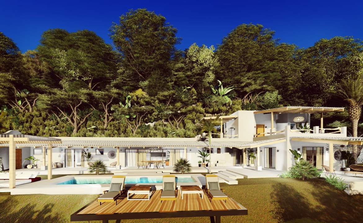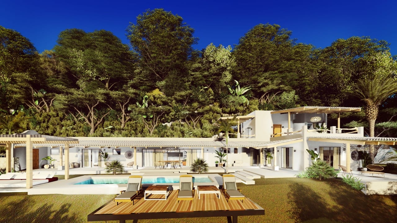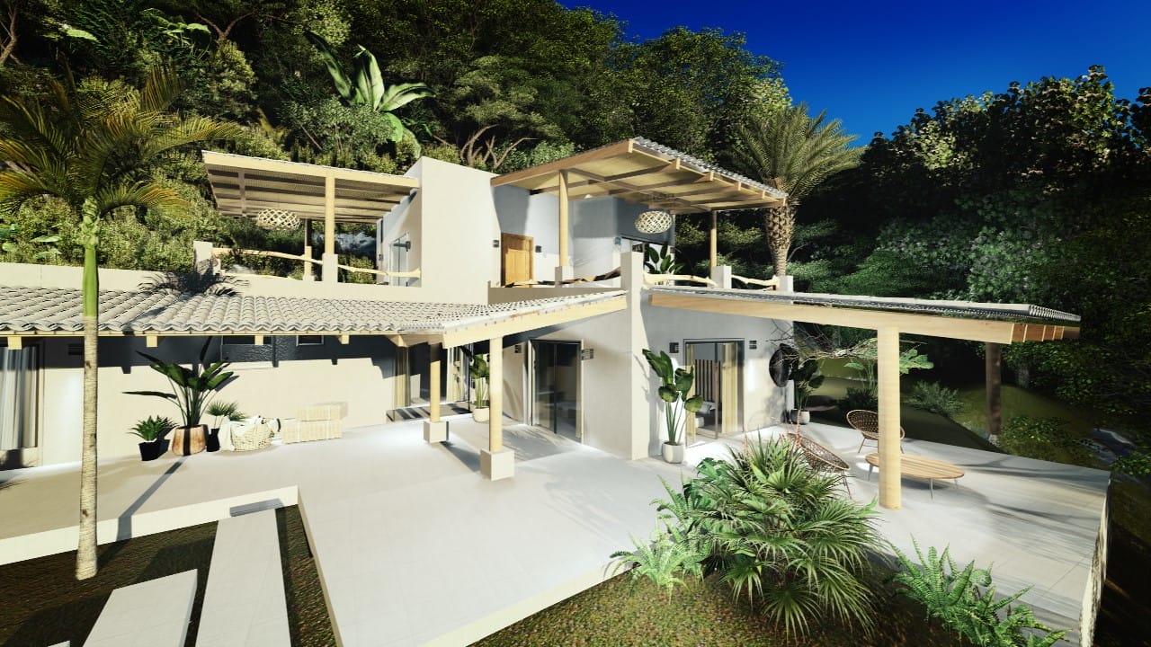 Located in a small gated community, only 2,5km from the ocean, at Potrero beach, this house will be built on 5000m2 land surrounded by a lot of trees and you’ll be amazed by all the birds coming to eat or bathe in your swimming pool.