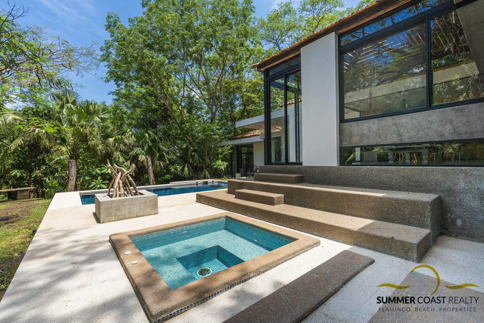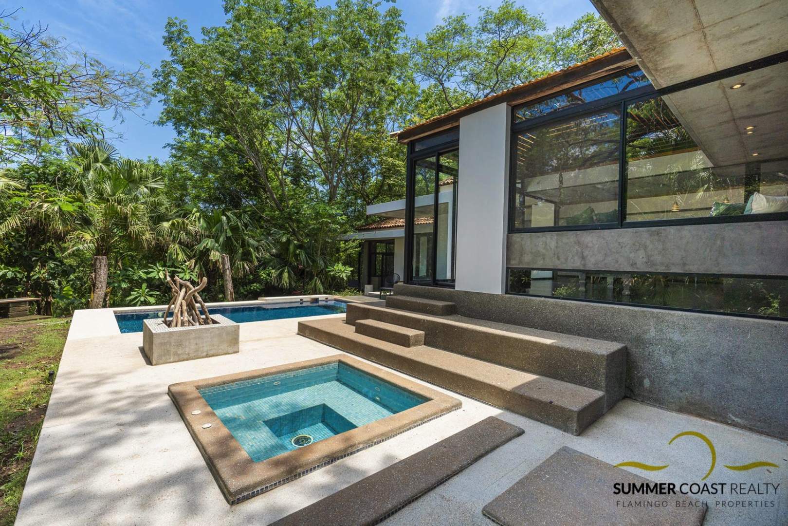 Outside, you’ll find a large deck that wraps around the pool & Jacuzzi and offer an alternation of sunshine and shade depending on the hour of the day. You can also hang out around the fire pit on a colder rainy season night.