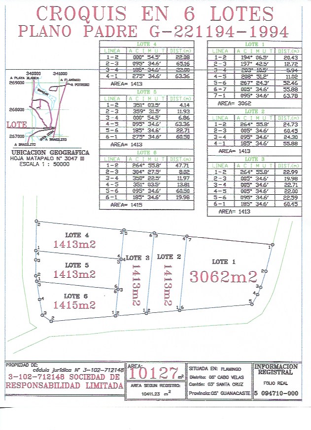 This is a full hectare of commercial property for sale in a prime, corner-lot location on the main highway entering Flamingo from the south. The road off the highway leads to Flamingo’s north ridge, Flamingo’s south ridge, and to the beautiful beaches of Brasilito. Future development in this area suggests this will be a very viable commercial location. This parcel is large enough to establish a significant commercial presence in the perfect location that enters into one of the most beautiful, touristic, beach towns you’ll ever see, for a very reasonable price.