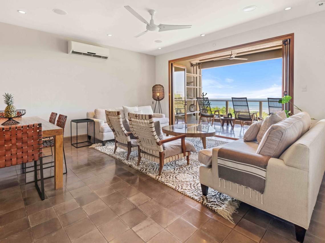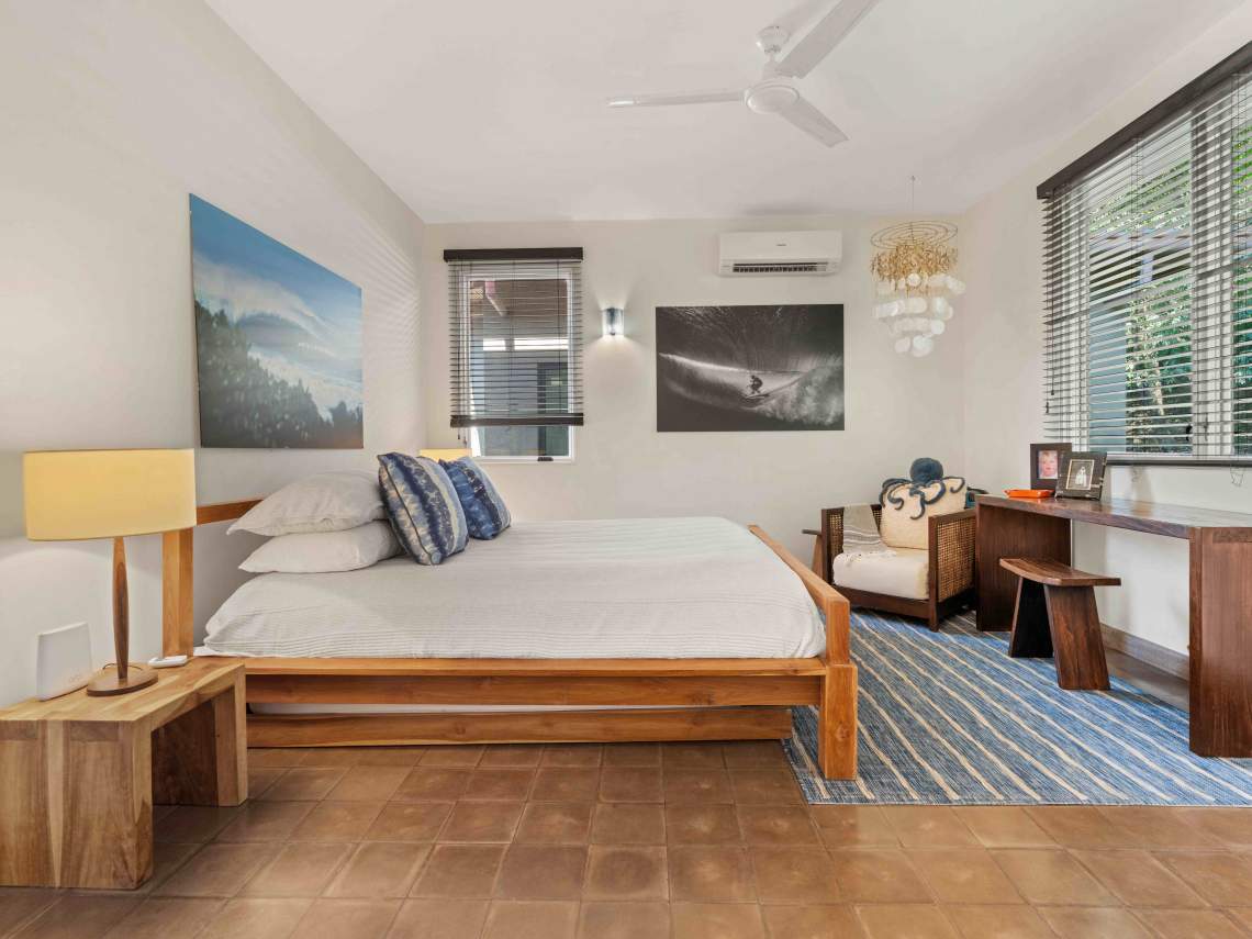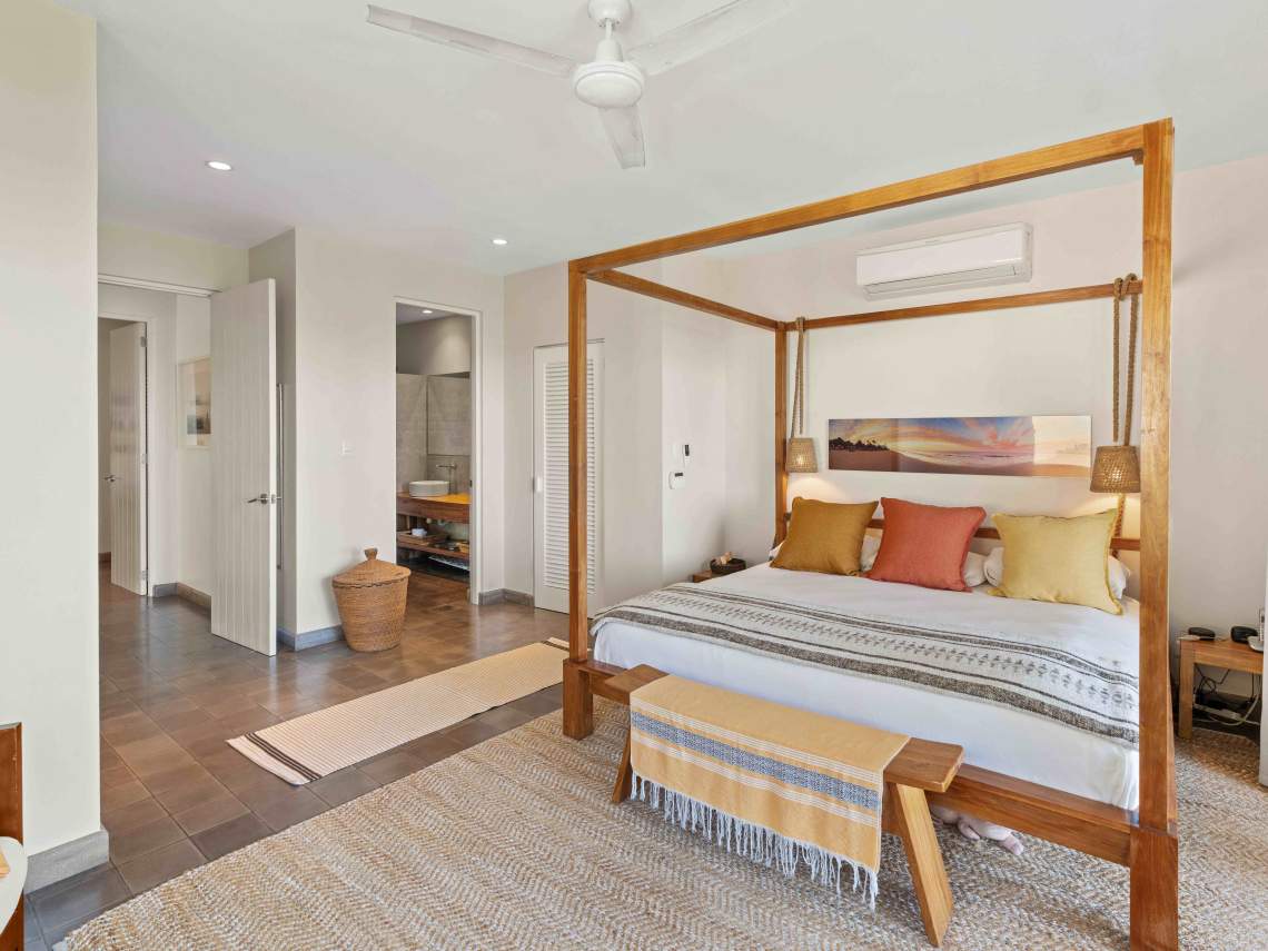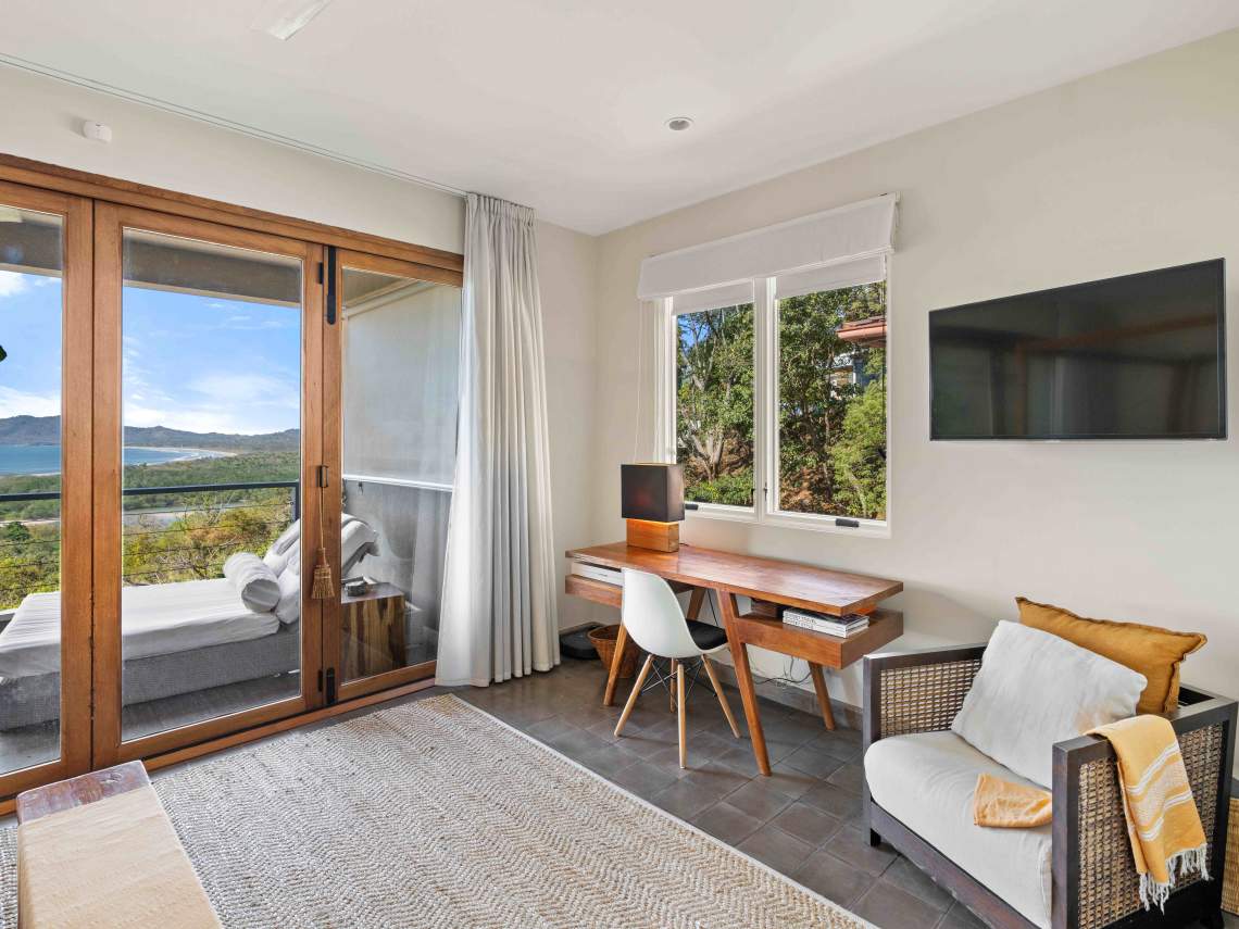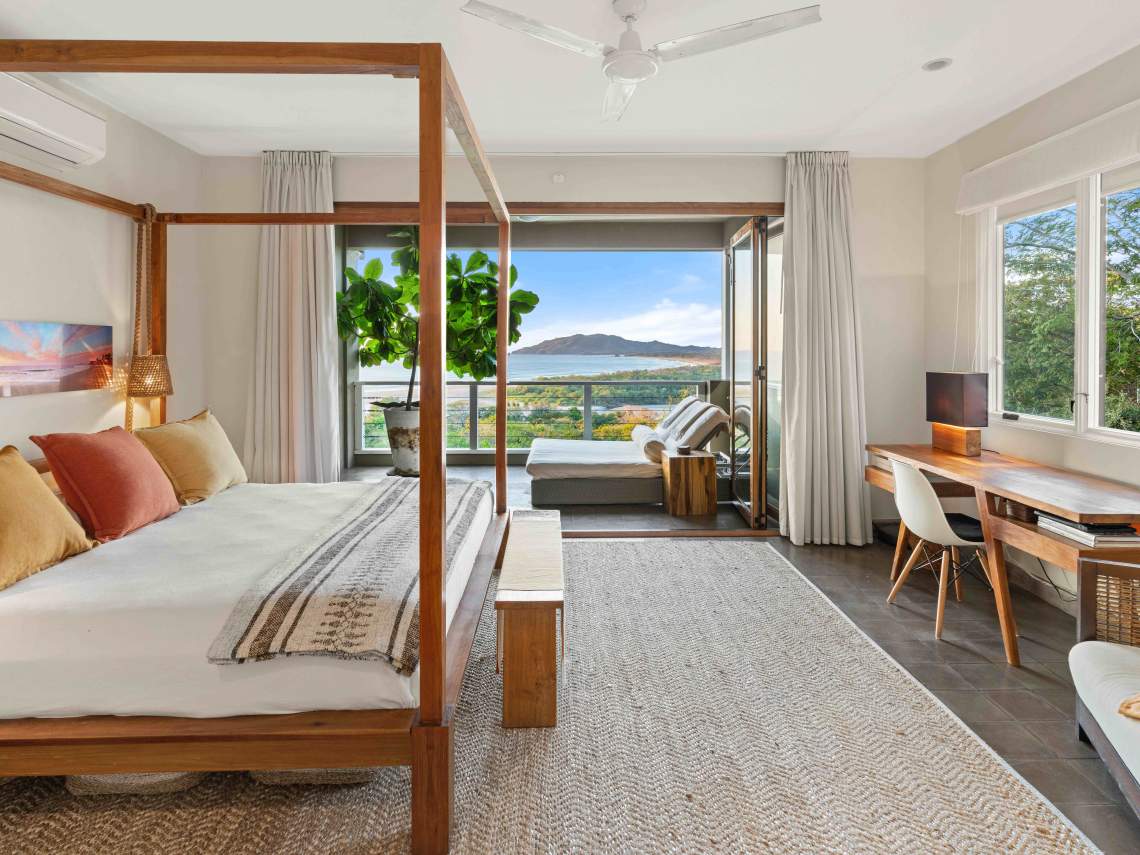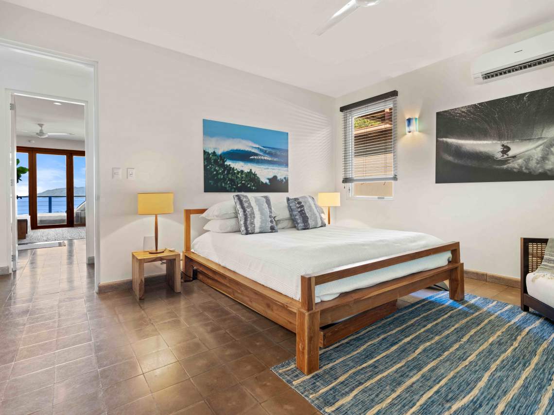 Las Mareas Villa#3 sits in El Tesoro, the fanciest gated community in Tamarindo. This special home gives you awesome views of Costa Rica’s Pacific coast, the Tamarindo river mouth, and Playa Grande Las Baulas National Park. It’s super close to Tamarindo beach, just a quick 200-meter walk away, offering top-notch surfing and great swimming spots. From here, you can see waves rolling in from three different surf spots.