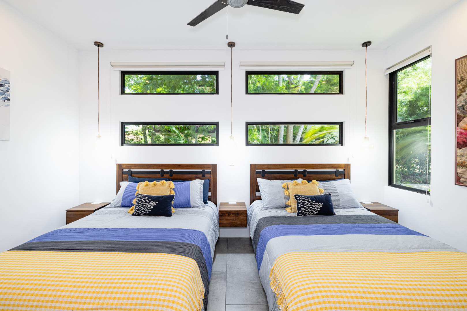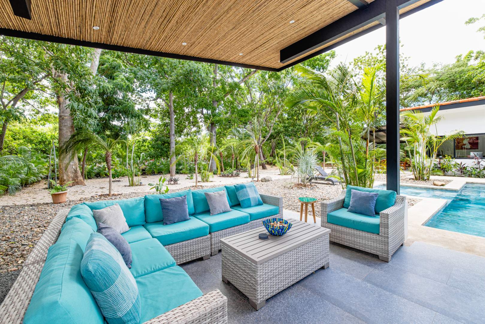 Villa Encanto’s homesite has been intentionally backfilled and compacted 35cm above street level for optimal rainwater drainage. The impeccable landscape enjoys several native specimen trees including Mango, Avocado, a giant Guanacaste, and exotic palms which hide a subtle black-lattice perimeter wall (1.2 meters in height) to enclose the property. Enjoy daily visits from the patrols of Howler monkeys that live in the canopies above. Due to the extreme wet and dry seasons in Guanacaste, grass has been replaced with a crushed white-rock and river rock aggregate to lower water consumption throughout the dry months. Over 2000 trees, plants, and shrubs were planted during construction to create a tropical oasis.