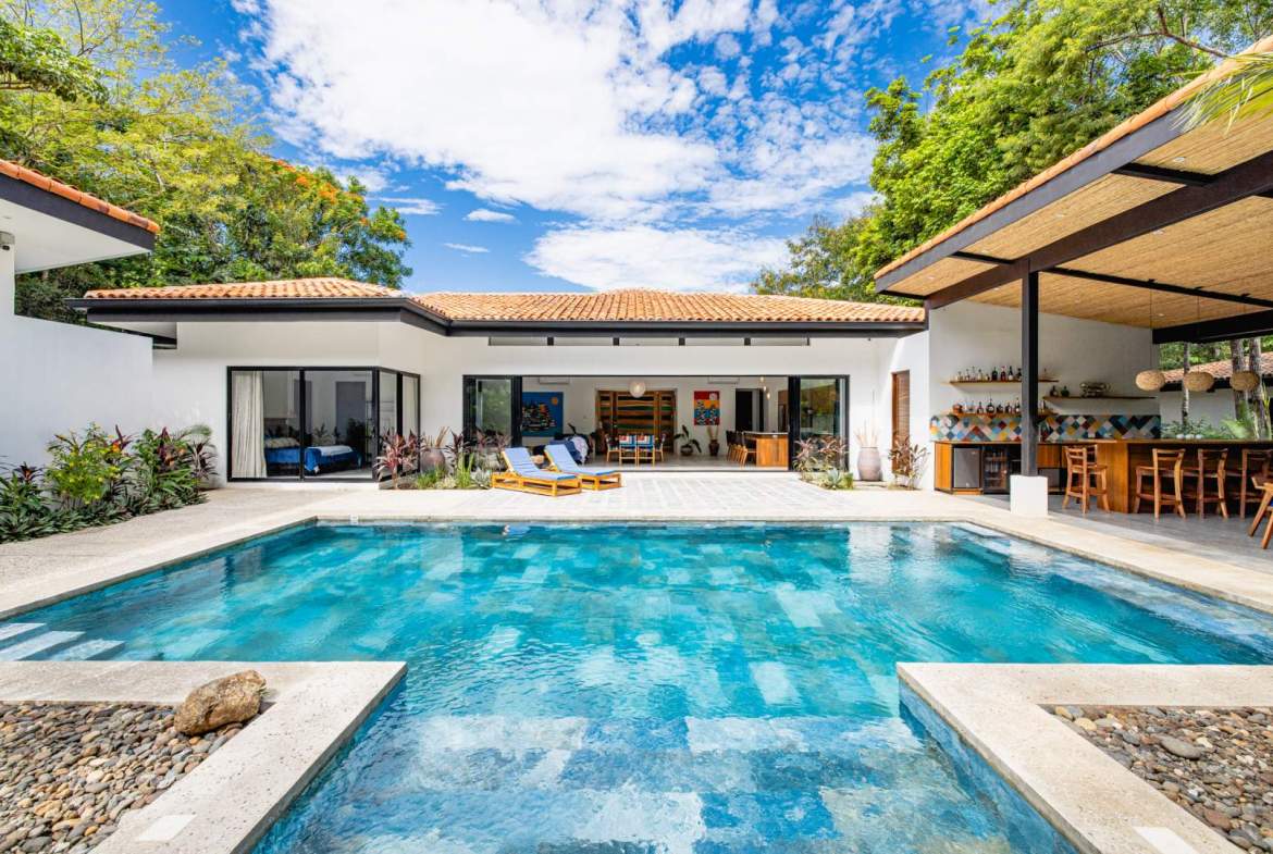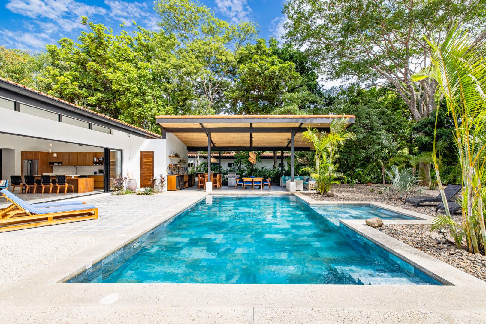 Villa El Encanto is a fantastic, 4-bedroom / 4.5-bath home that beams with personality. Located on a half-acre homesite within Reserva de Golf | Hacienda Pinilla, this home is approximately 10 minutes walking to the Pacific Ocean and J.W. Marriott Resort. Reserva de Golf is adjacent to holes 4, 5, & 6, and enjoys private gated entry with 24/7 live security, paved roads, underground infrastructure, and a community park with tropical landscaping, footpaths, and a zen-like