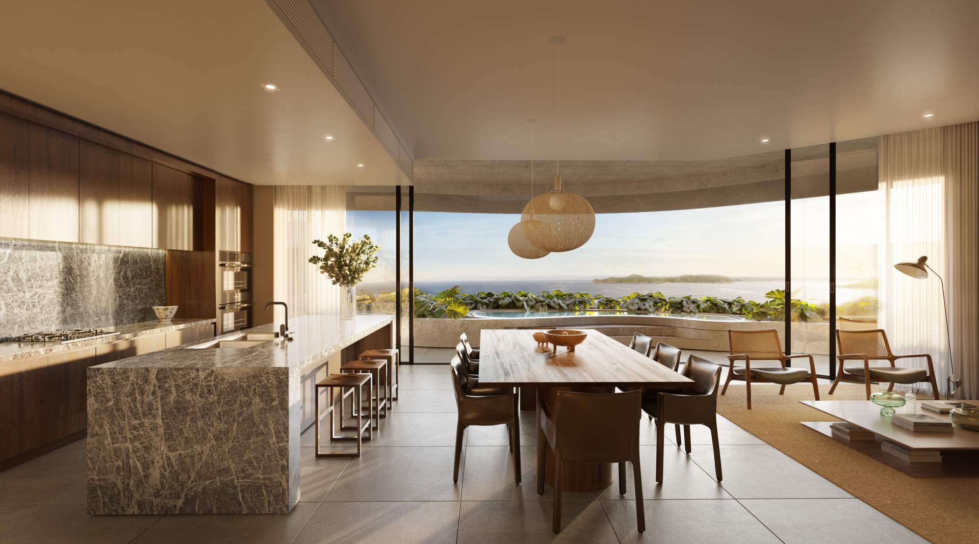 – Interiors that integrate elements of the natural environment, with organic materials, clean lines and authentic ornamental details.
